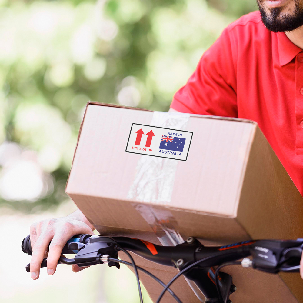 These self-adhesive labels are easy to apply, stick securely to cartons, boxes, and parcels, and stay in place throughout shipping. The combination of the Made in Australia Label and clear directional warning not only protects fragile goods but also reinforces the authenticity of Australian-made products.