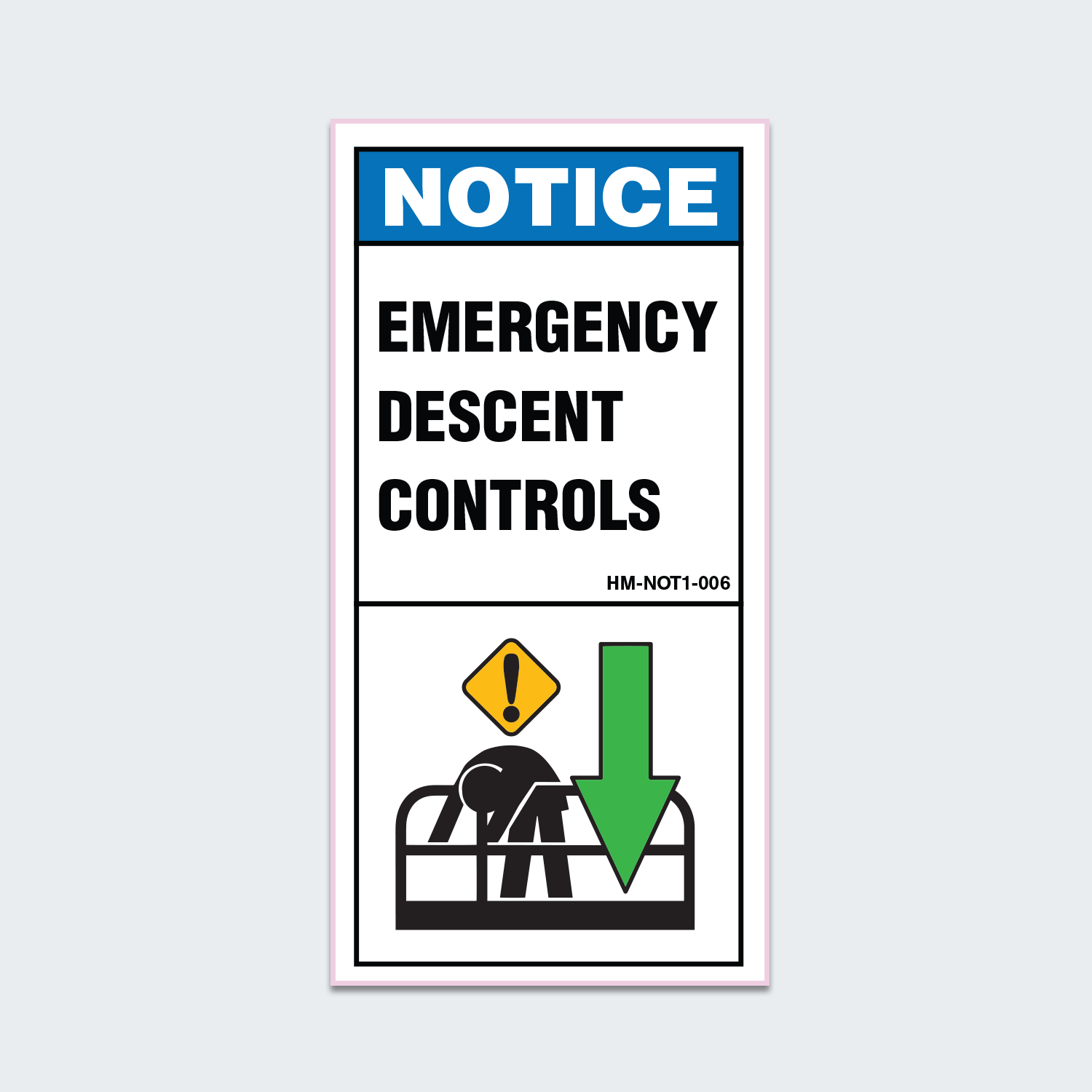 NOTICE EMERGENCY DESCEN CONTROL – HEAVY MACHINERY